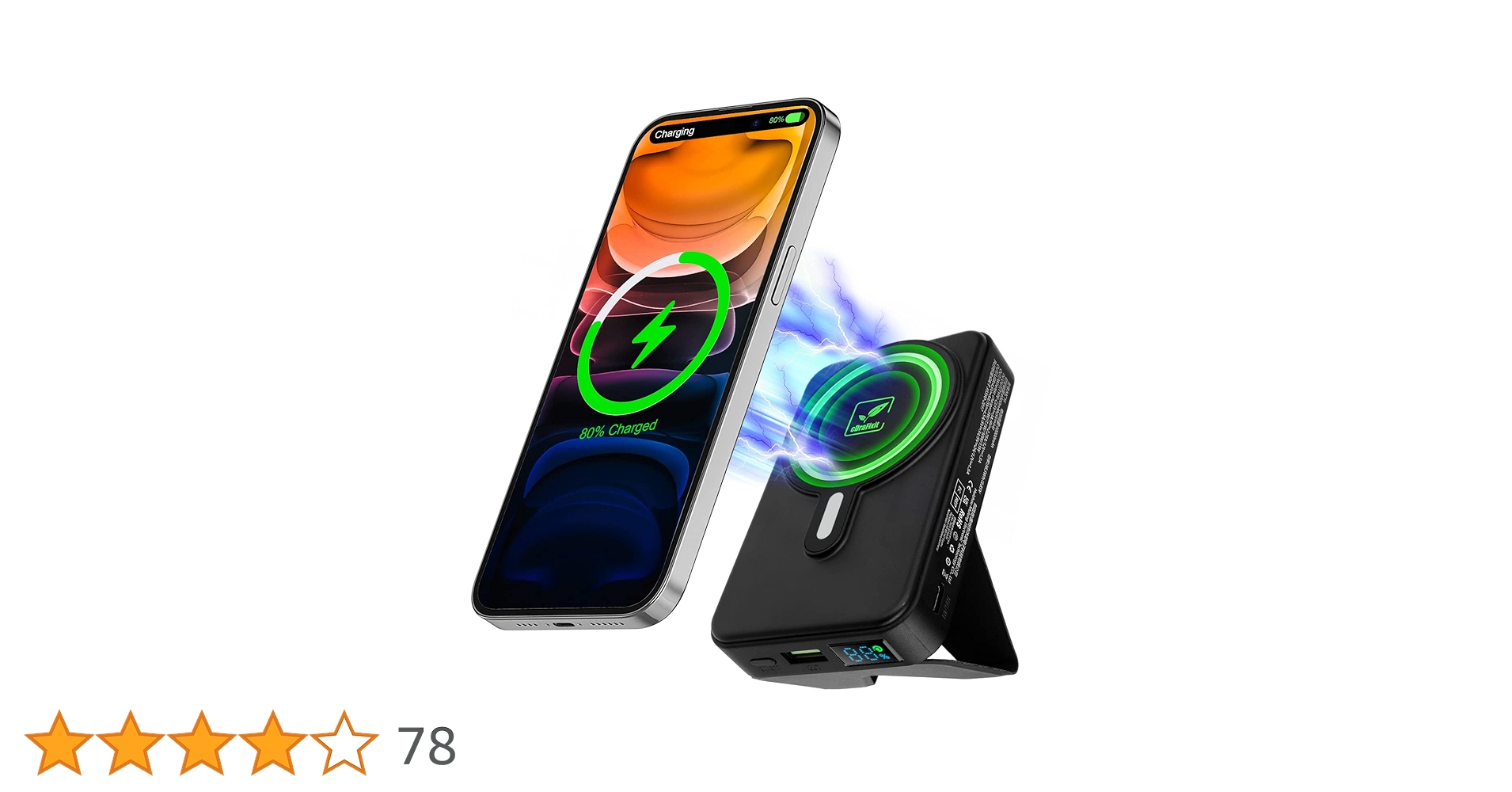MagSafe対応のモバイルバッテリー。折りたたみスタンドが付いているので、充電中もiPhoneを立てて使えます。ただ、ちょっとスタンドが不安定気味なのが不安なところ。この点だけ気をつければ、まったく問題なく、普通のモバイルバッテリーとして使えます。