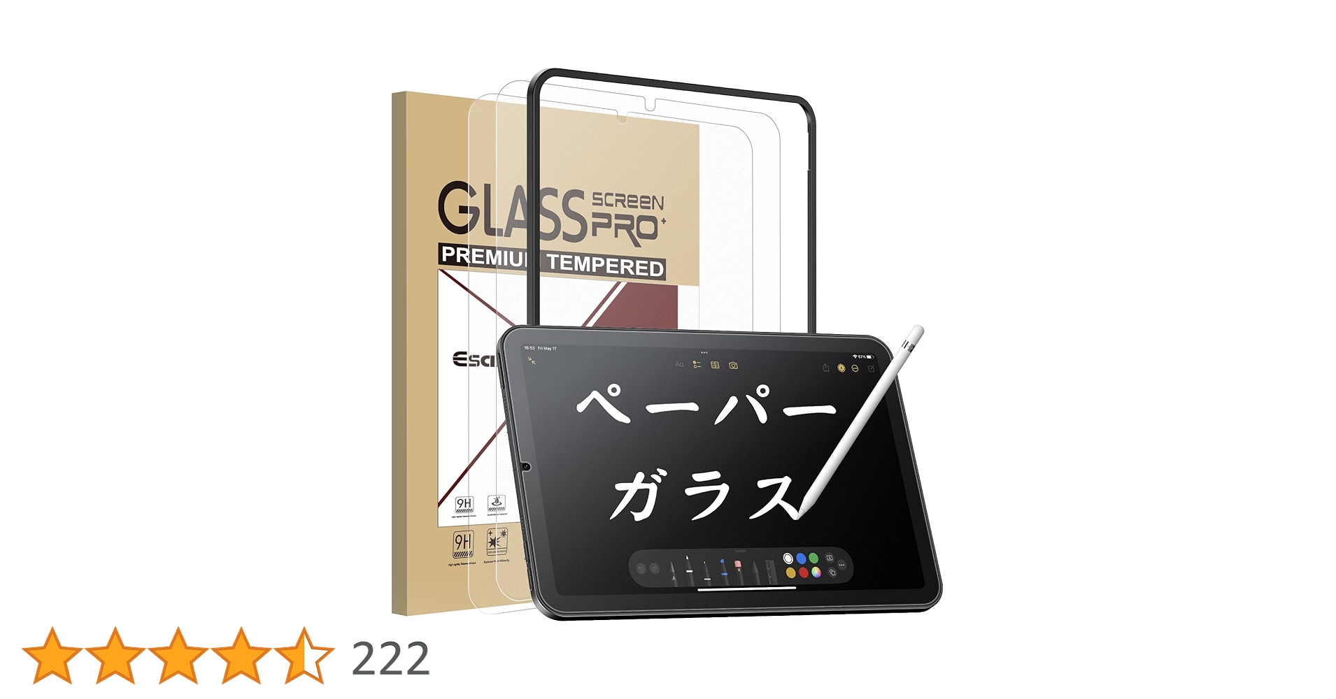 iPadでペン先を交換したApple Pencilを使う場合、ペーパーライクフィルムは必須です。しかし、ペーパーライクフィルムはガラスフィルムほどの耐久性はない、、、。Esanikのフィルムは、そんな弱点を改善した製品で、ペーパーライクの書き味でガラスフィルムの耐久性持っています。