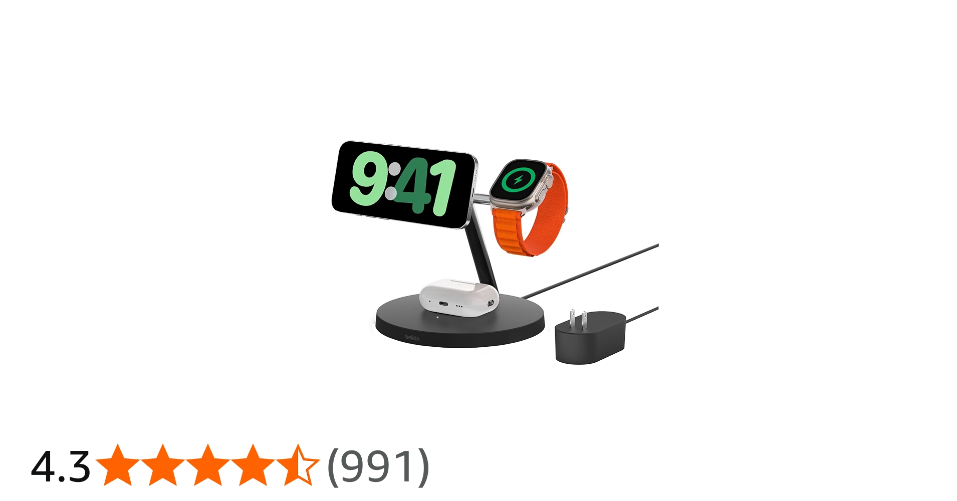 デザイン性の高い MagSafe 対応の充電器。この手の 3 in 1 タイプだと定番の Belkin 製です。デザインもいいのですが、やはり充電の安定性が高いのが魅力ですね。