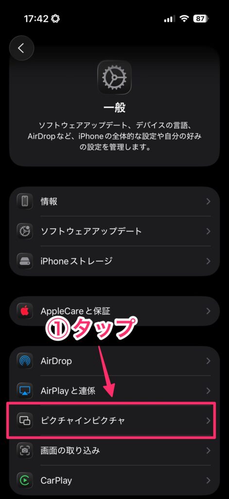 ①iOS/iPadOSのピクチャインピクチャ設定を確認