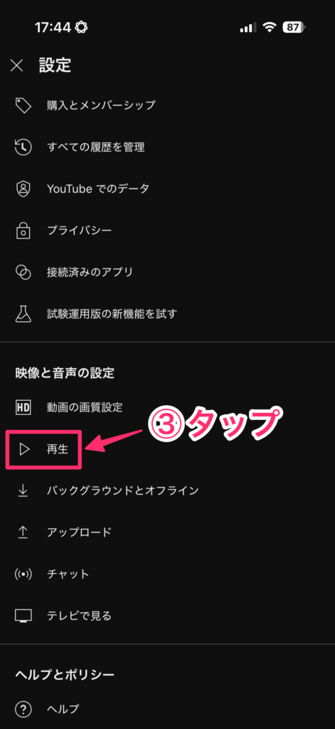 各アプリの設定も重要なポイントです。ここではYouTubeを例に説明します。