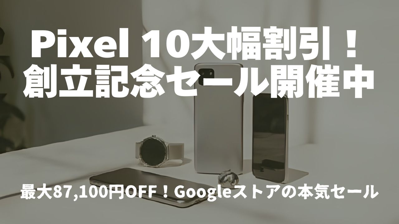 Googleストアで「Google創立記念キャンペーン」が2025年9月26日から10月13日まで開催されています。最新のPixel 10シリーズはもちろん、Pixel 8aやPixel Watch 4まで幅広い製品がお得に購入できるチャンス。