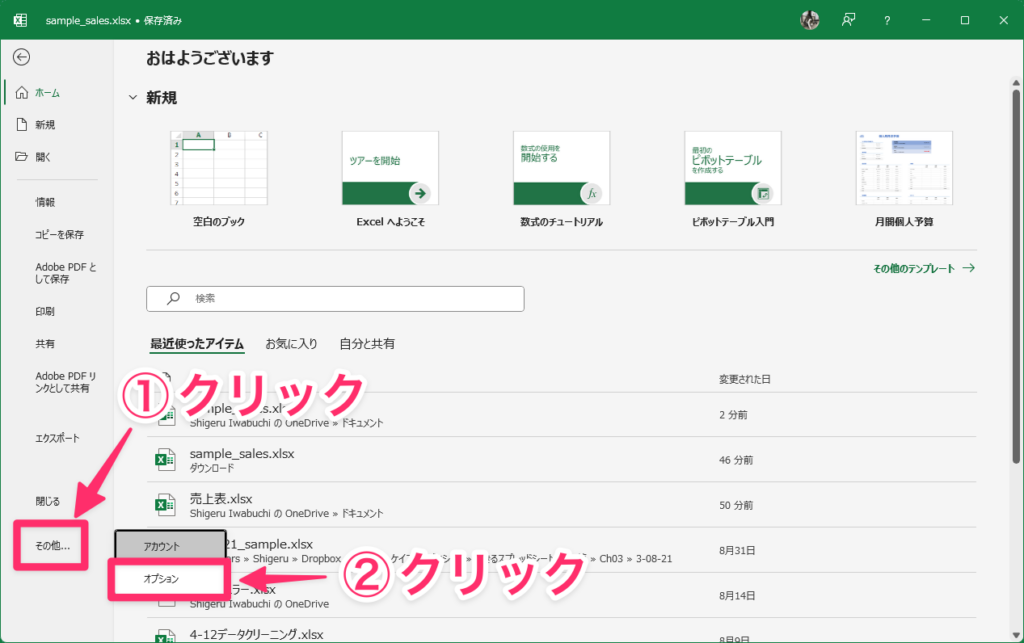次に「その他」→「オプション」をクリックします。