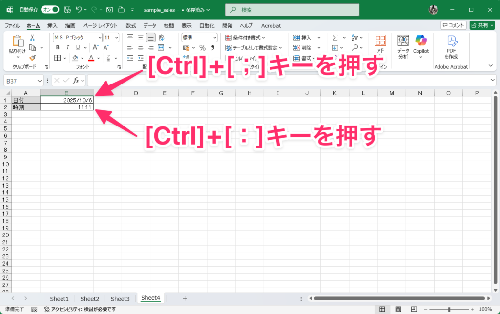 4:現在の日付や時刻を素早く入力
