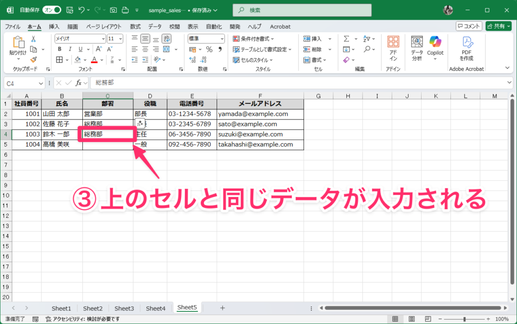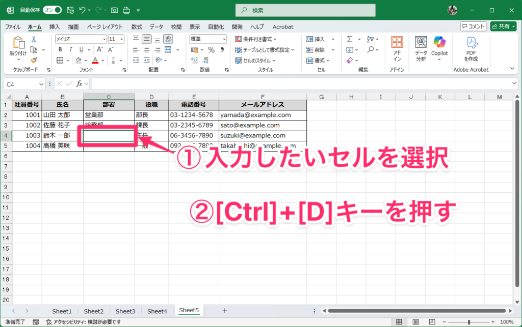 5:すぐ上のセルと同じデータを素早く入力