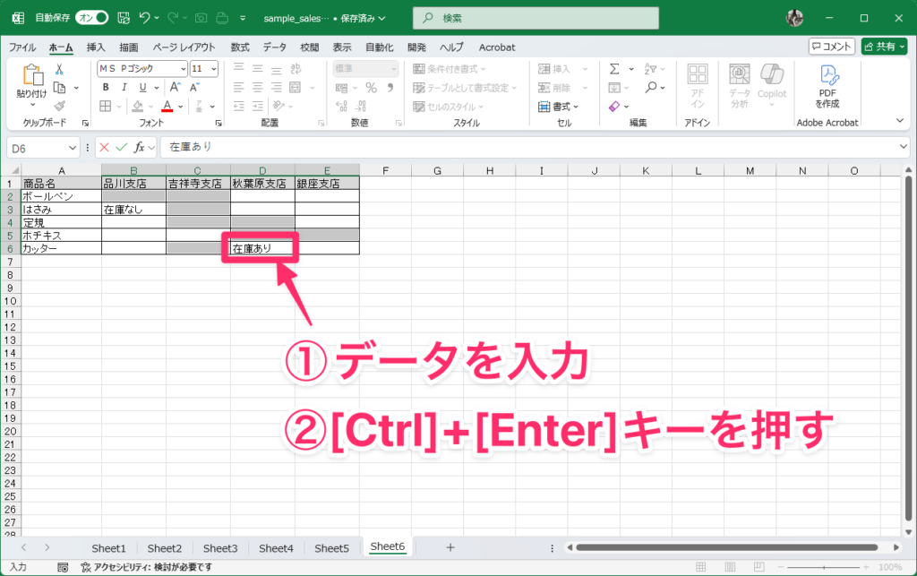 6:同じデータを複数のセルに一括入力