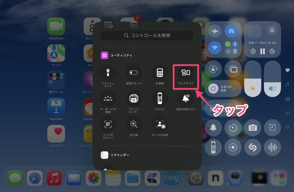 これでコントロールセンターからマルチタスクのオン・オフが切り替えられるようになりました。