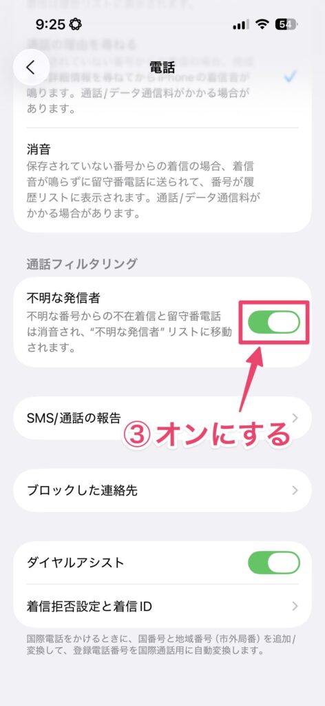 この設定をオンにすると、知らない番号からの着信音が鳴らなくなります。ただし、宅配便の再配達や病院からの連絡など、重要な電話もミュートされてしまう点には注意が必要です。そういった連絡が予定されている場合は、一時的にオフにしておくといいでしょう。