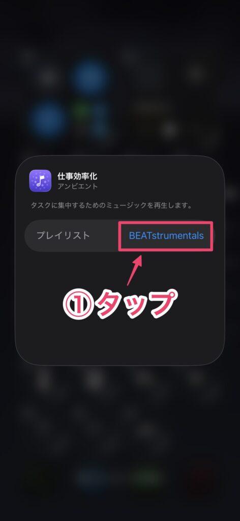 そこで使うのが「アンビエント」という機能です。これは本来、環境音楽を流すためのコントロールセンターボタンとして用意されているものですが、この設定を変更することで任意のプレイリストを再生できるようになります。