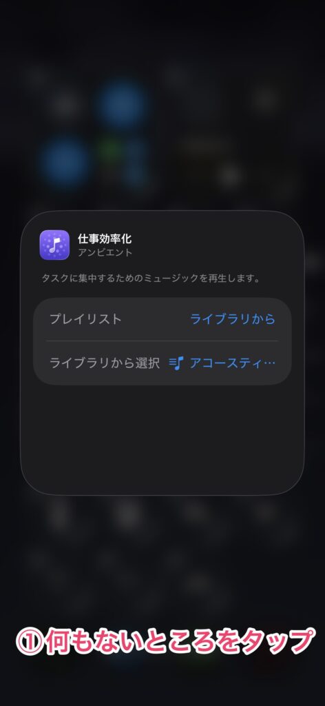 プレイリストを選択したら、画面の何もないところをタップします。コントロールセンターの編集画面に戻るので、画面の何もないところをタップします。これで設定は完了です。