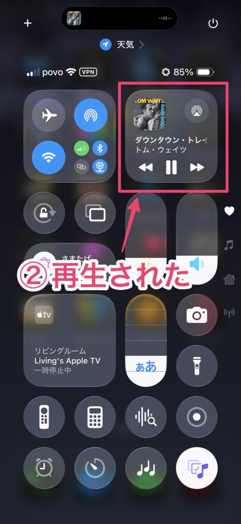 これでコントロールセンターからプレイリストを再生できるようになりました。プリセットのアイコンをタップすれば、すぐに選んだプレイリストが再生されます。