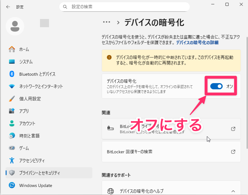 Windows 11 Homeエディション:デバイス暗号化をオフにする