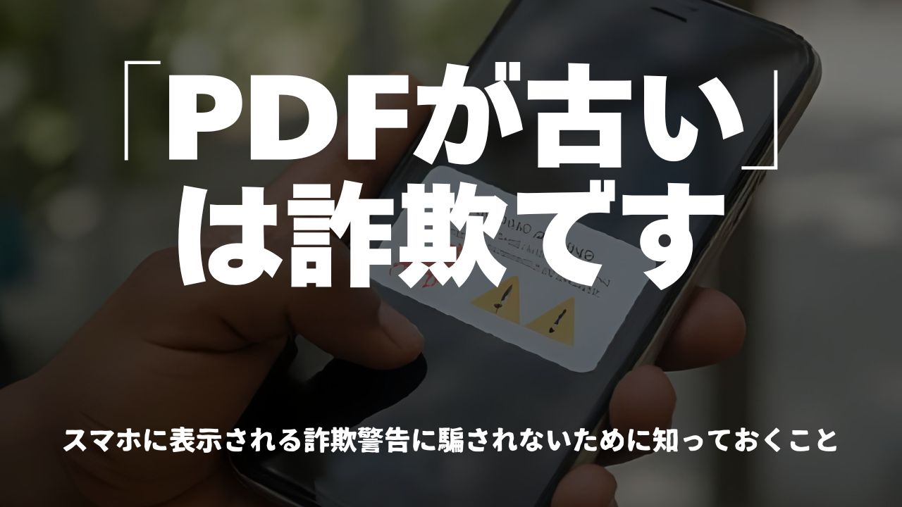 スマホに表示される「PDF有効期限切れ」「PDFバージョンが古い」という警告は、ほとんどが詐欺目的の偽警告です。PDFファイル自体に有効期限はありませんし、正規のアプリやOSがブラウザ上で突然このような警告を出すこともありません。