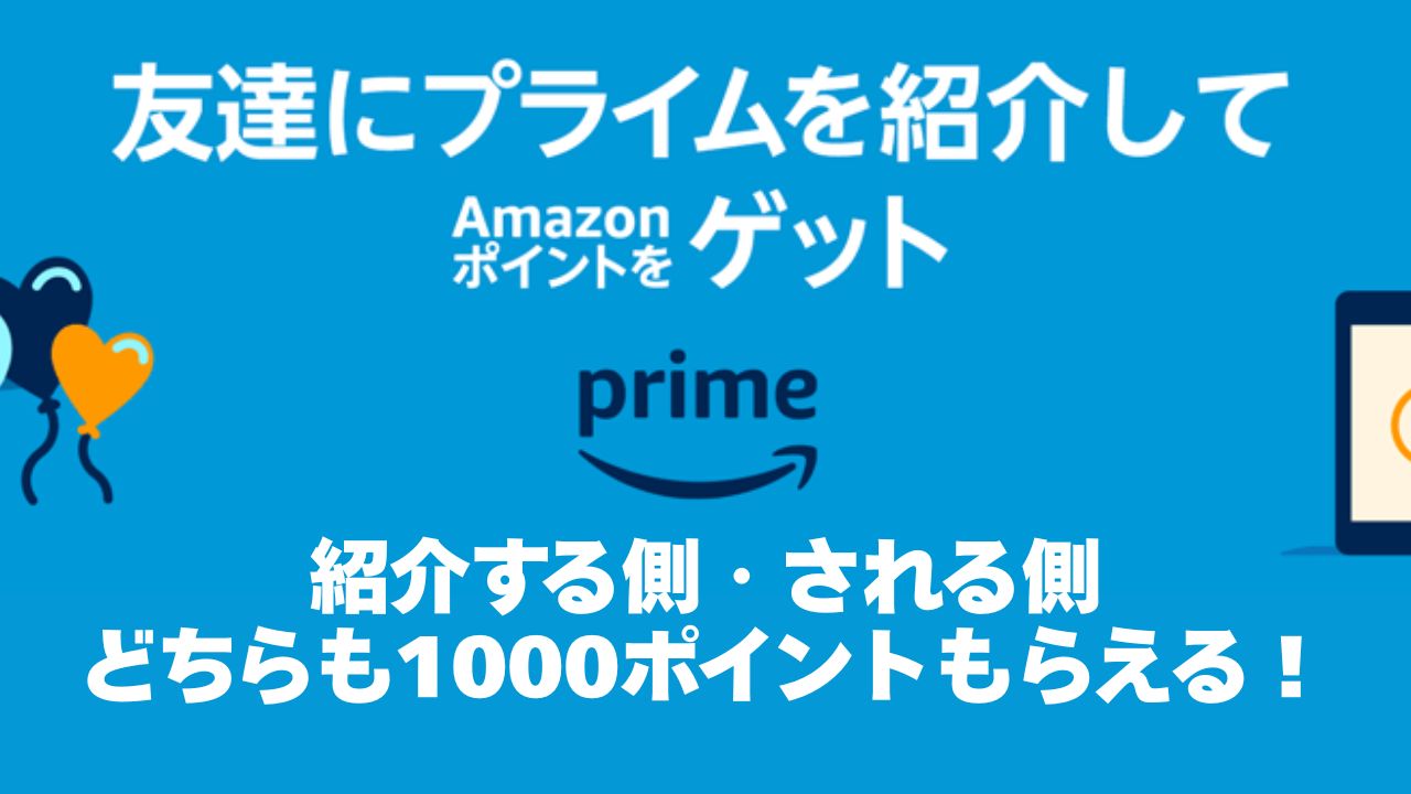 Amazonプライム紹介プログラムは、既存のプライム会員が発行する専用の紹介リンクを経由して新規会員が登録し、条件を達成すると、双方に1,000円分のAmazonポイントが付与されるというキャンペーンです。