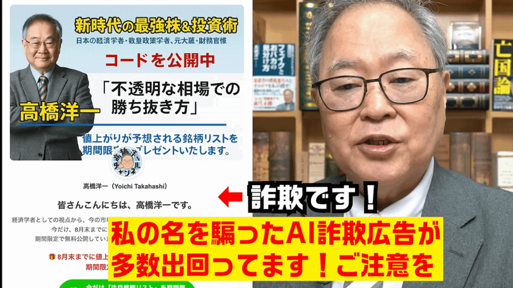 高橋洋一氏が自身のYouTubeチャンネルで警告している様子(引用:高橋洋一チャンネル