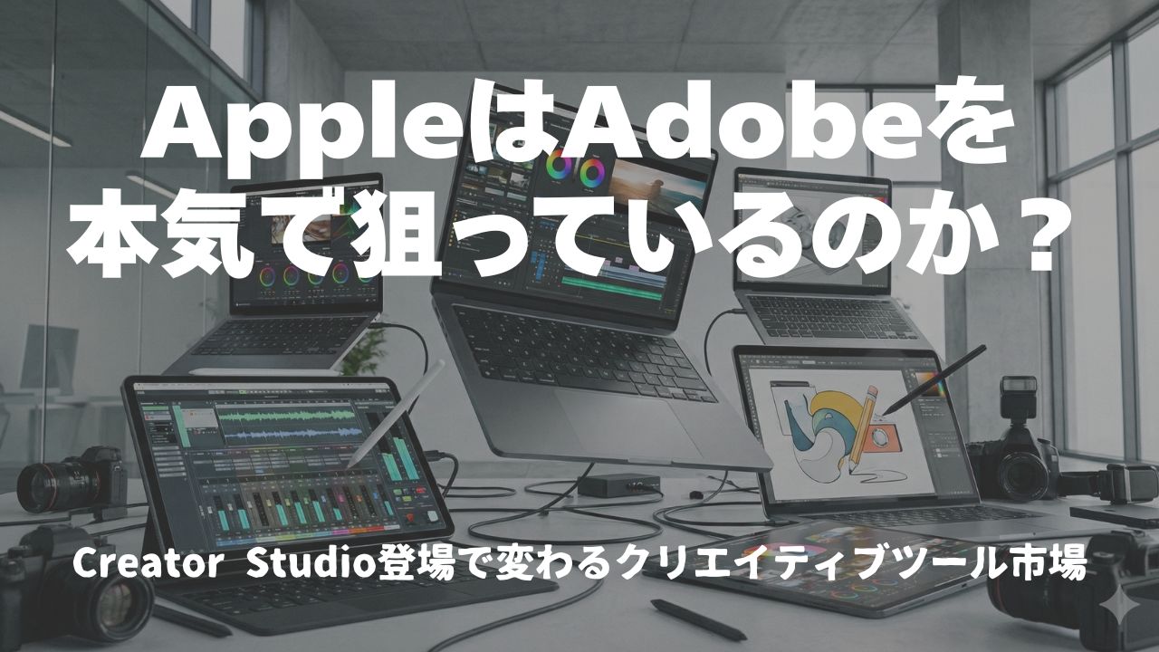 クリエイティブツール市場に、大きな変化の波が押し寄せています。Appleが2026年1月、月額1,780円で動画・音楽・画像編集ツールをまとめた「Apple Creator Studio」を発表しました。これまでAdobeがほぼ独占していたこの市場に、CanvaやAffinityといった新勢力も台頭し、まさに「三つ巴」の競争が始まろうとしているんですよね。