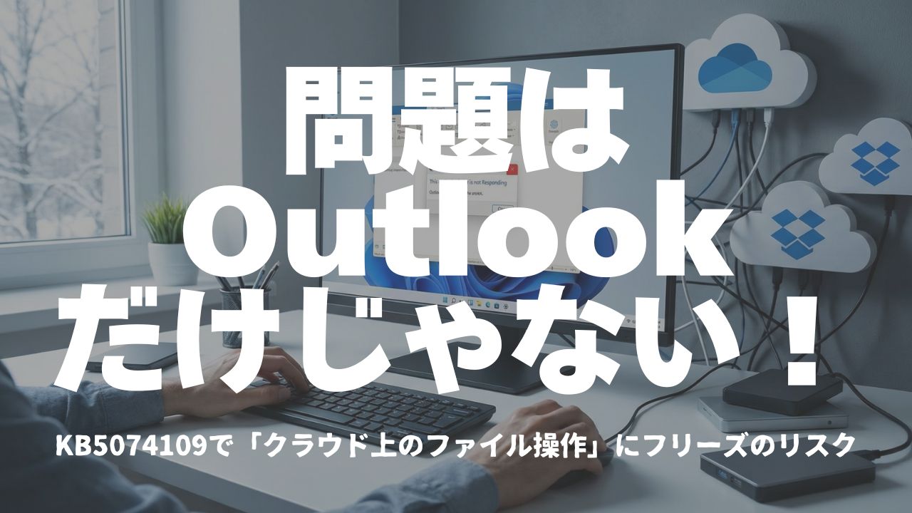 先日の記事では、KB5074109適用後にクラシックOutlook+POP環境でフリーズ・終了不能になる問題を中心に解説しました。ところがその後の公式情報を追っていくと、どうやら話はOutlookだけでは終わらないことが見えてきたんです。