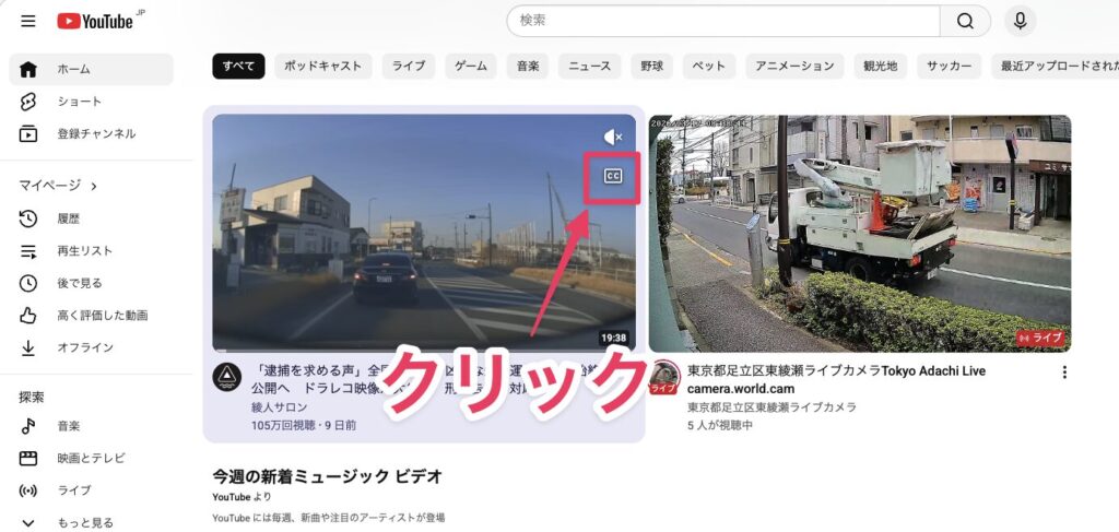 - ② 字幕だけ消したい → プレビュー右上の「CC」アイコンをクリック