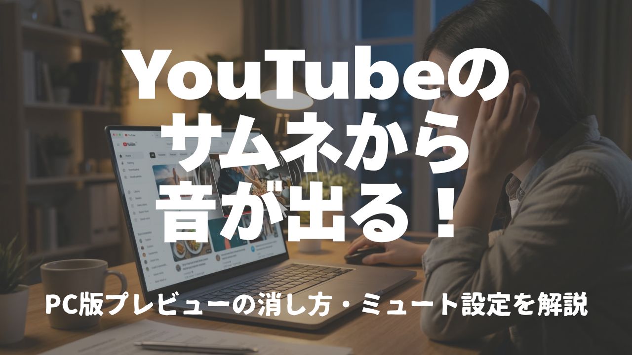 仕事中や電車の中、夜中にYouTubeを開いたときに思わぬタイミングで音が出るのは、正直なところかなり困りますよね。そこで、PC版(ブラウザ版)YouTubeでプレビューの音だけミュートする方法、字幕を消す方法、そもそもプレビュー自体をオフにする方法、という3つの対処法を順番に解説します。